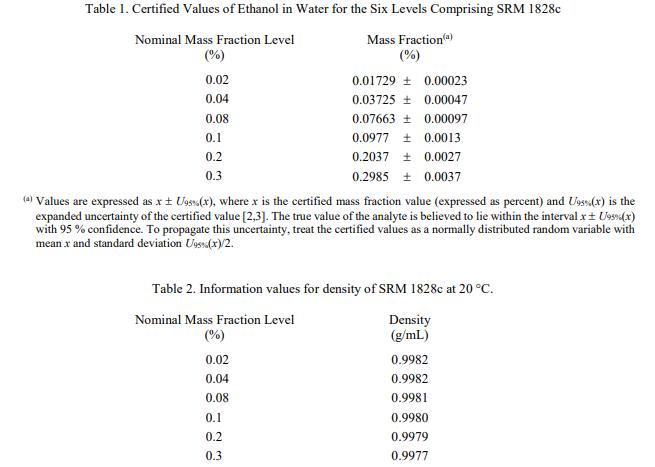 簡介:NIST SRM 1828c 乙醇-水溶液(標準品) 旨在用于校準用于測定水溶液中乙醇的儀器和技術。